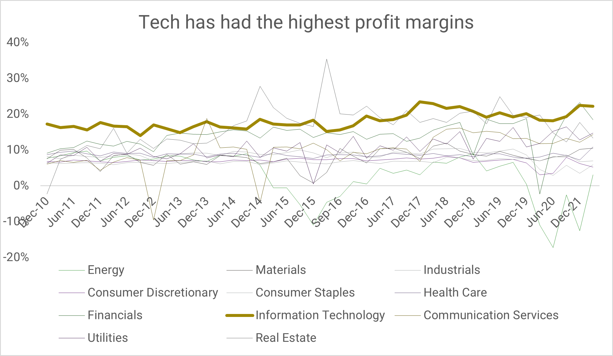 Technology has been the best performing sector for 10 years. And it has outperformed for the correct reason: it makes more money.