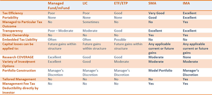 The table below from PPM (Private Portfolio Managers) provides a comparison of the key features of Australia’s primary investment management structures.