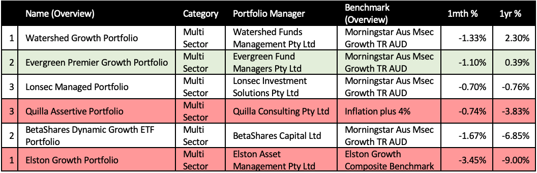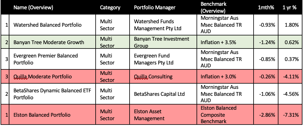 On the flip side, taking out the wooden spoon for worst MDA, jointly, were Elston’s Growth and Balanced funds, with returns of -9.0% and -7.31% for the year. Betashares similarly struggled with its index approach dragging the BetaShares Dynamic Growth and Balanced ETF Portfolio well below the benchmark. The unsung heroes in times of despair were gold, cash, and longer-dated bonds. These assets continue to play their role as defensive safeguards.