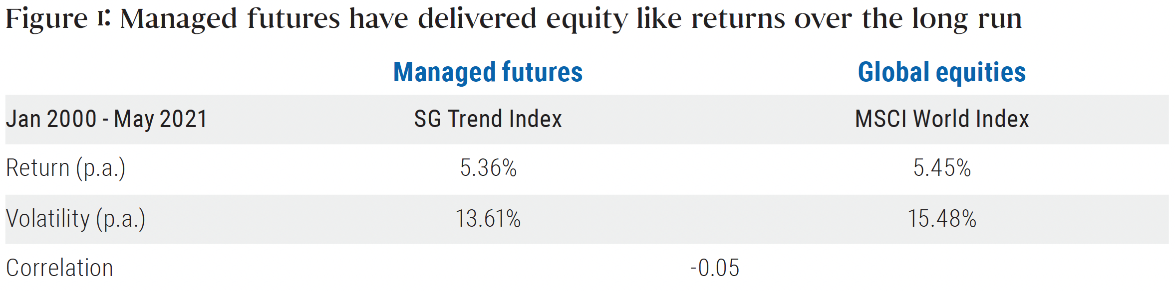 Over the long-run, trend-following strategies have delivered returns that are similar to equity markets, with lower volatility and a negative correlation to equities, attracting allocations from investors seeking diversification from equity risk (see Figure 1).