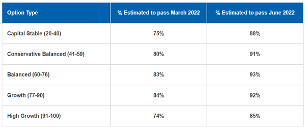 This improved pass rate represents a significant improvement from the 31 March 2022 data which estimated that 20 per cent of the options assessed would have failed the performance test, according to the SuperRatings research.