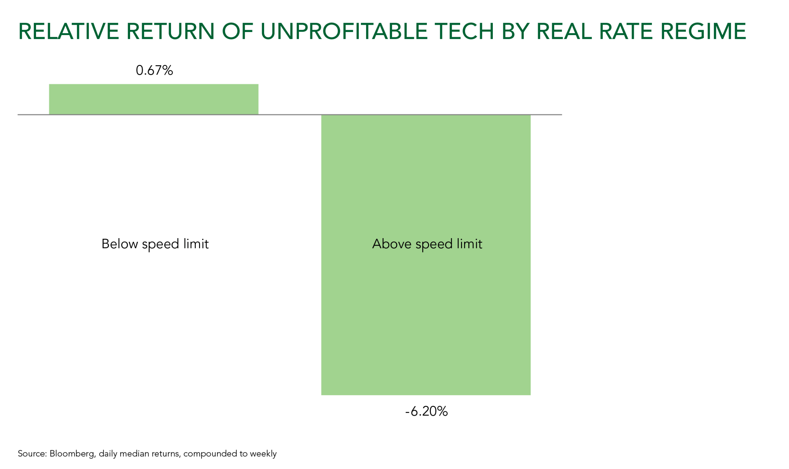 The sector most exposed to rising real interest rates tends to be the frothy end of the tech market. The Fed is now in tightening mode to combat inflation. Liquidity conditions are going to worsen, and real rates are likely to get jumpy. In equity markets, this will hurt – and already is hurting – unprofitable tech most.