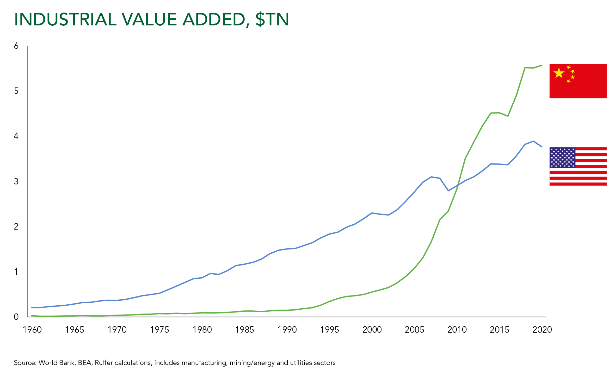 Chinese mercantilism is the second part of the equation. The Chinese discovered the magic money tree and with it, they built a manufacturing empire. Rapid industrialisation piled deflationary pressure on durable goods prices, which kept the lid on both consumer price inflation and interest rates in the West.